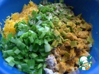 Всыпать вместе с приправами. Я ещё нарезала оливки. |