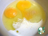 В яйца влить сливки и добавить чесночный порошок (у меня он с солью). Взбить. |