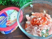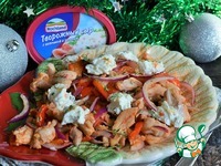 Описание: Теплый салат, который можно подать и как закуску, и на горячее. Сытно, пикантно, нежные кусочки творожного сыра оттеняют остроту курицы. Рекомендую.