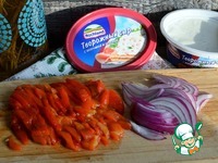 Перец запечь до подпалин, в духовке, 200 градусов, 30-40 минут. Положить в пакет, через 10 минут почистить, остудить. |