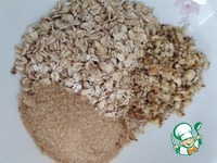 Смешиваем овсяные хлопья, орехи, коричневый сахар, растопленное сливочное масло. Я люблю корицу - поэтому добавила. |