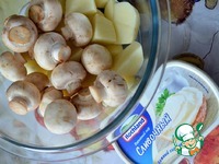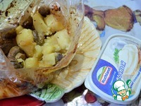 Описание: Сложный гарнир или полноценное горячее, всеми любимая картошечка с грибами. Заправим сливочным сыром и запечём в пакете, легко и просто. Рекомендую.