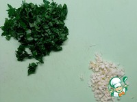 Далее добавляем в сковороду чеснок, сметану, сыр, петрушку. |