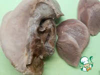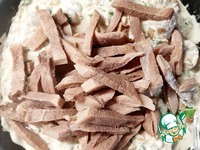 Я использовала только половину языка. Вторая половина пошла на другое блюдо. Нарезаем язык на тонкие ломтики, затем на брусочки. |