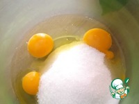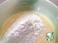 Муку смешать с разрыхлителем и постепенно добавить в тесто. Тесто должно получиться однородным и густым. Добавить в тесто яблоки. |
