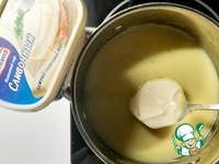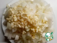 В кастрюле, где будете варить суп, растопить сливочное масло, положить мелко нарезанный репчатый лук и чеснок, обжарить до мягкости. ⠀ |