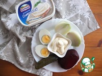Свеклу трем на крупной терке, яйцо на мелкой. Огурец нарезаем небольшими кубиками. |
