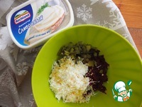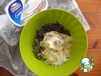 Майонез, плавленный сыр, солим и перчим. Я добавила молотый перец и сушенный чеснок. |