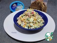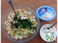 Описание: Сегодня в крабовый салат я добавлю кальмара и заправку сделаю из майонеза и творожного сыра. Древний крабовый салат "заиграет новыми нотками" и будет ещё нежней и вкусней.