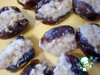 Нафаршировать финики начинкой. Присыпать тертым шоколадом и украсить орехами. Убрать в холодильник на 1-2 часа. |