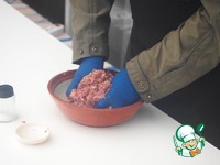 В фарш добавить соль, перец и базилик. Вымесить фарш до состояния густой однородной массы. |