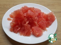 Чистим и освобождаем от горькой оболочки мякоть грейпфрута. |