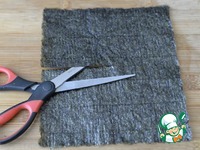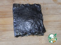Берём лист нори и режем до середины с одной стороны. |