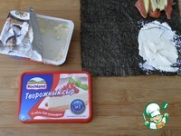 Переворачиваем эту четвертинку на лист с творожным сыром. |