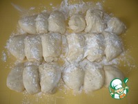 Затем каждый кусочек теста разрежьте еще на три части. |