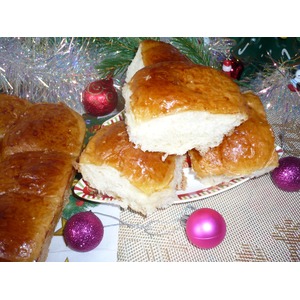Смазать подошедшие булочки яичным желтком + 1 ст. л. молока. Выпекать в предварительно разогретой духовке при 180 градусах 20 - 22 минут. |