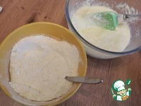 Порциями подсыпаем муку и вымешиваем тесто. |