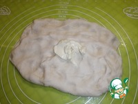 Нажимая кончиками пальцев немного растянуть тесто в лепешку. Сверху добавить кусочек мягкого сливочного масла и размазать по лепешке. |