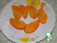 Хурму нарезать на небольшие ломтики. Лучше использовать не совсем мягкий плод. |