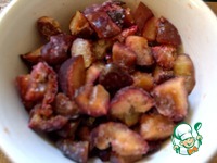 Сливы прямо замороженные разрезать на кусочки и обвалять в ложке крахмала. |