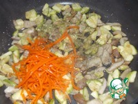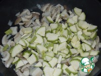 Добавить кабачок в сковороду к грибам. Жарить 3 минуты. |