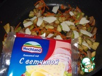 Добавить сыр плавленый, перемешать и жарить 1-2 минуты. |