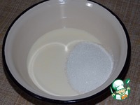 Маргарин растопить, остудить до теплого состояния. Добавить сахар, перемешать. |