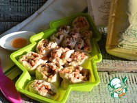 Приготовить начинку, для этого на растительном масле обжарить лук. Добавить кусочки курицы. |