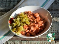 Добавить паприку, довести до готовности. Добавить кубики маринованного огурца, перемешать. При необходимости посолить по вкусу. |