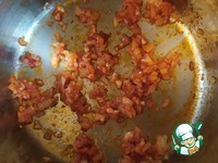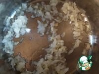 Разогреть масло, обжарить лук, затем добавить чеснок и обжарить ещё минуту. |