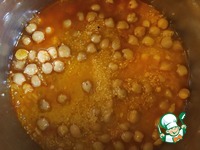 Я взял консервированный нут. При желании можно заменить на сухой. Тогда его придётся замочить на ночь и перед готовкой отварить. Бульон - куриный или овощной, но можно обойтись и водой. |