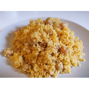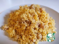 Затем добавить кускус, быстро перемешать. Накрыть крышкой и выключить огонь. Через 5 минут снять крышку и хорошо взбить кускус вилкой. |