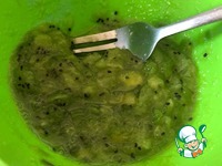 Киви размягчить, смешать с 20 гр сахарной пудры. Можно добавить ложку манки. |