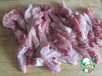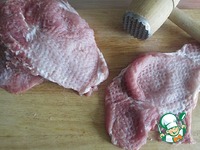 Свинину нарезаем ломтями, отбиваем в тонкие пласты |