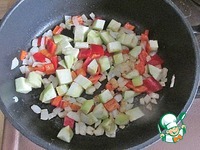 Добавляем сладкий перец и кабачок, жарим, помешивая, 3 минуты |