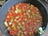Вливаем мякоть томатов или томатный сок, солим и перчим по вкусу, тушим 5 минут. |