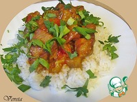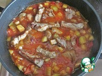 Описание: Или мясо с "быстрым" рататуем. Короче, мясо со всеми овощами, которые входят в известное овощное блюдо: кабачком, баклажаном, сладким перцем, томатами, луком и чесноком. Вкусное и сытное блюдо, приготовление коего не займет много времени. Никакой духовки. Очень хорошо готовить со свининой, курицей, индейкой, но можно и с телятиной.