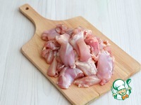 Филе бедра курицы (800 гр.) без кожи и косточки нарезать полосками. |