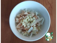 Я чеснок мелко порублю и отправлю к салу. Можно его выдавить или натереть на мелкой тёрке. Отправляем к салу. |