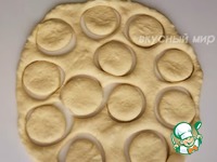 Раскатываем тесто в пласт толщиной около 1 см. Вырезаем кружки, ромбики или квадраты. Накрываем тесто и оставляем для подъема на 20-30 минут. |