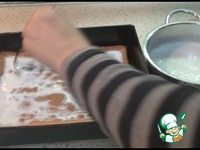 Поливаем пирог горячим молоком, даём молоку впитаться. |