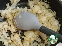 На сковороду наливаем немного оливкового масла, выкладываем лук и обжариваем до слегка золотистого цвета |