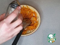 Добавляем обжаренный лук к натертой тыкве, перемешиваем |
