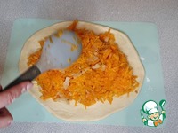 На раскатанный кусок 2/3 - выкладывается начинку |