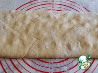 Слегка раскатываем сложенное тесто, накрываем целофаном и оставляем на 10 минут.. |