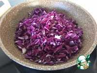 Капуста - через 13 минут. Если будет поджариваться, добавляем чуть-чуть воды. |