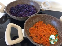 Тушим по-отдельности в разных емкостях на масле до мягкости. Морковка будет готова через 6 минут. |