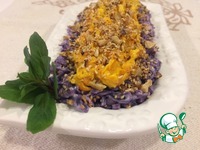 Собираем наш салат: на капусту выкладываем морковку и посыпаем орехами с кунжутом. |