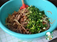 Добавить перья лука, жарить 3 минуты, посолить. |