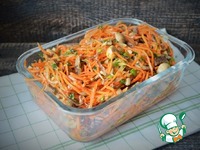 Описание: Вариант салата по мотивам корейского хе, но не с сырым мясом. На праздничном столе будет востребован, особенно мужской аудиторией. Ведь острое на закуску - самое то! P.S.: я предоставила вариант средней остроты, более привычной для многих семей, при желании можно добавить перец чили и чеснока ещё. Рекомендую.